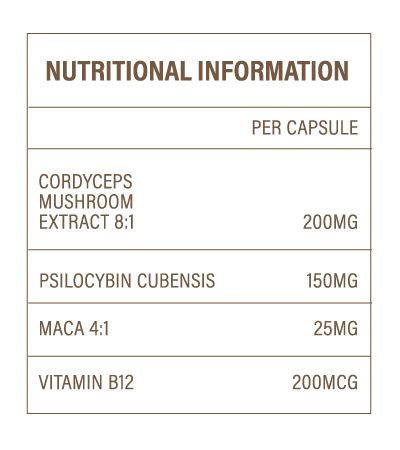 Featuring Maca, Cordyceps; B12 extracts and psilocybin