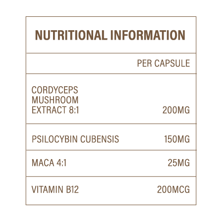 Featuring Maca, Cordyceps; B12 extracts and psilocybin, Vital is the perfect supplement for endurance training, work energy, concentration, and more.